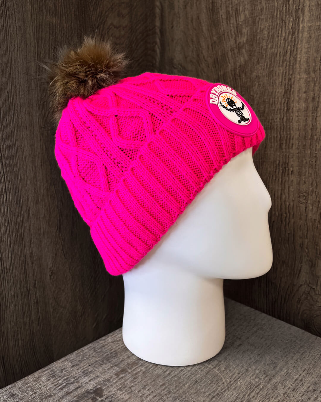 Why not get a cosy DRYBONES Bobble Hat to match your DRYBONES coat! The fun and funky DRYBONES Bobble Hats are all adorned with a one off, customised, bespoke, rubberised DRYBONES logo. The rubberised logos come in bright pink, Turquoise or our signature orange. All logos are already in place and cannot be interchanged.